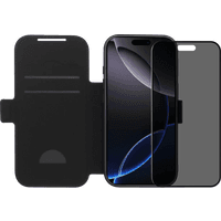 Aanbieding BlueBuilt Apple iPhone 17 Pro Book Case Leer Zwart + BlueBuilt iPhone 17 Pro Privacy Screenprotector Glas