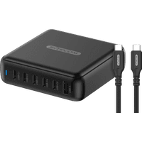 Laad je laptop, tablet of smartphone op met 200 watt vermogen.Via de usb A poort en 5 usb C poorten laad je maximaal 6 apparaten tegelijkertijd op.Door de GaN technologie in deze oplader laad je jouw apparaat sneller op dan met gewone opladers.Wil je meerdere apparaten tegelijkertijd opladen, dan heb je meer kabels nodig.Een nylon kabel is minder stevig dan een kevlar kabel.